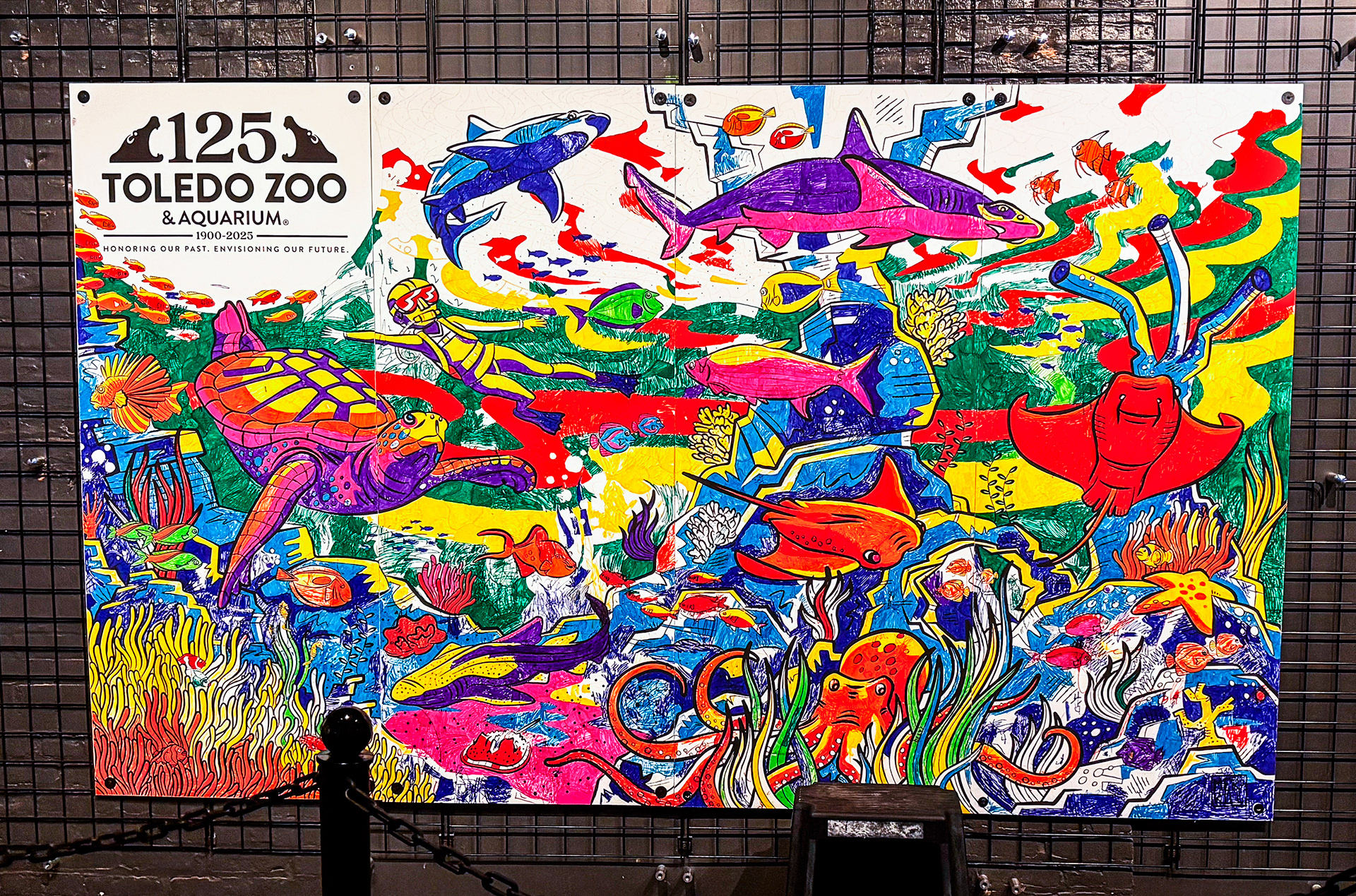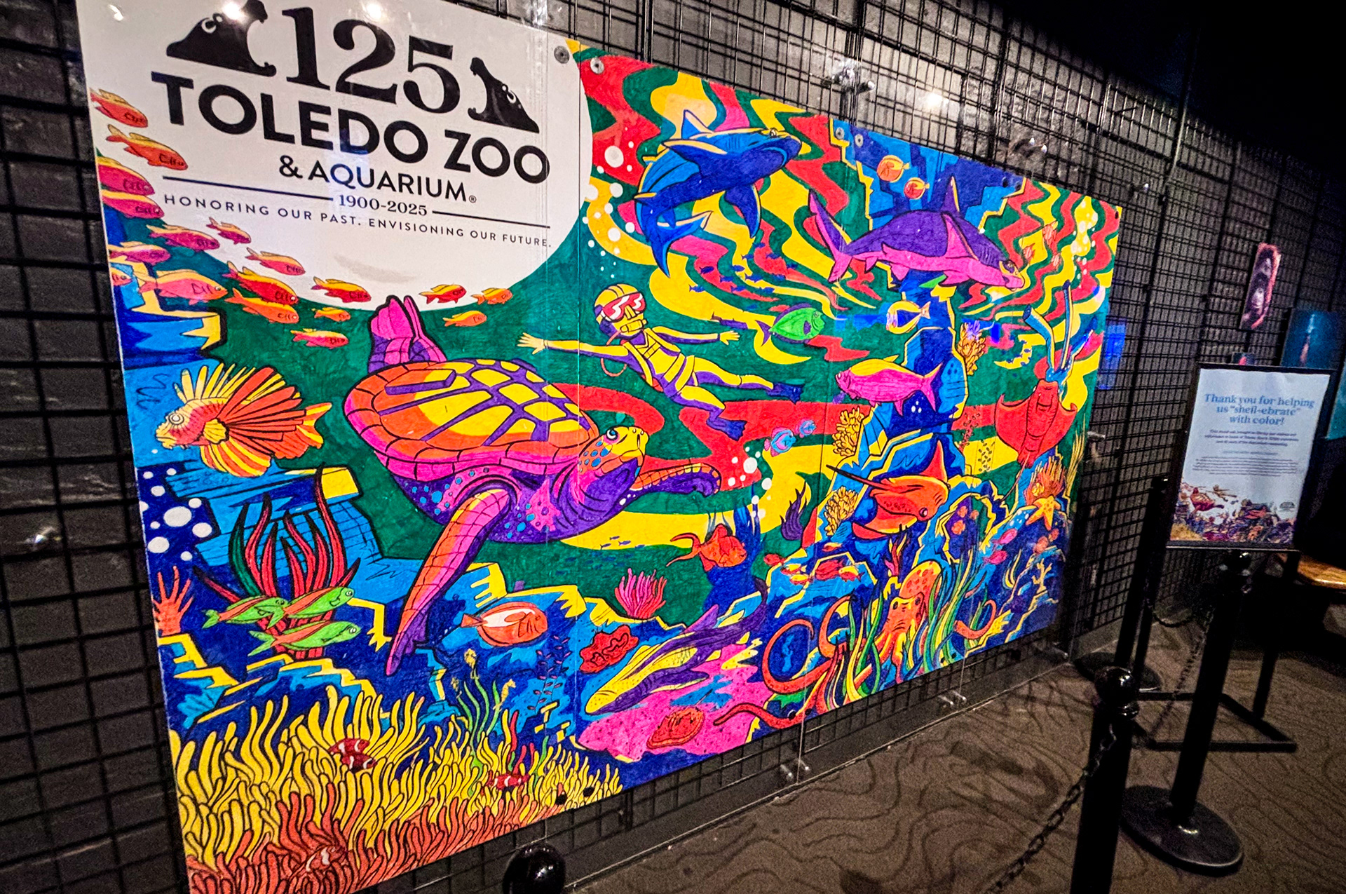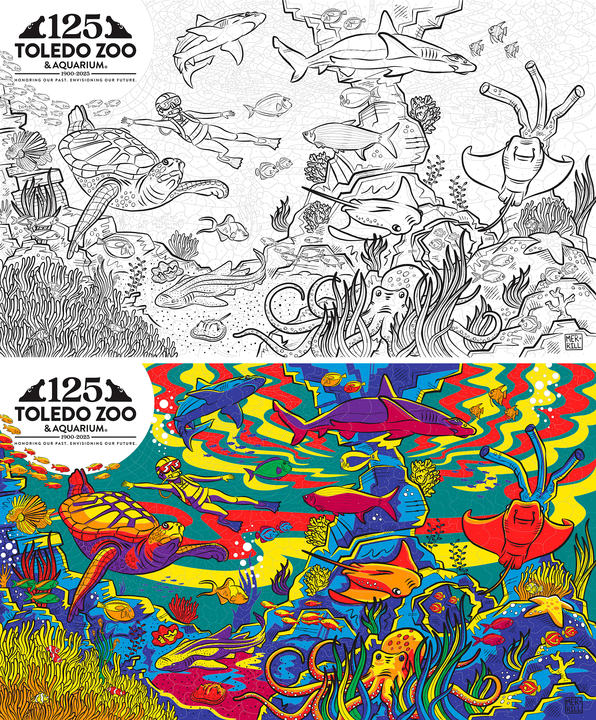 The Toledo Zoo & Aquarium commissioned me to create a 10' x 7' color by number wall that would be colored in by visitors to the zoo as part of their 125th anniversary event in March of 2025. The wall art includes some of the Toledo Zoo’s fan favorite sea life found at the aquarium, sectioned off into hundreds of areas to be colored in by the general public.