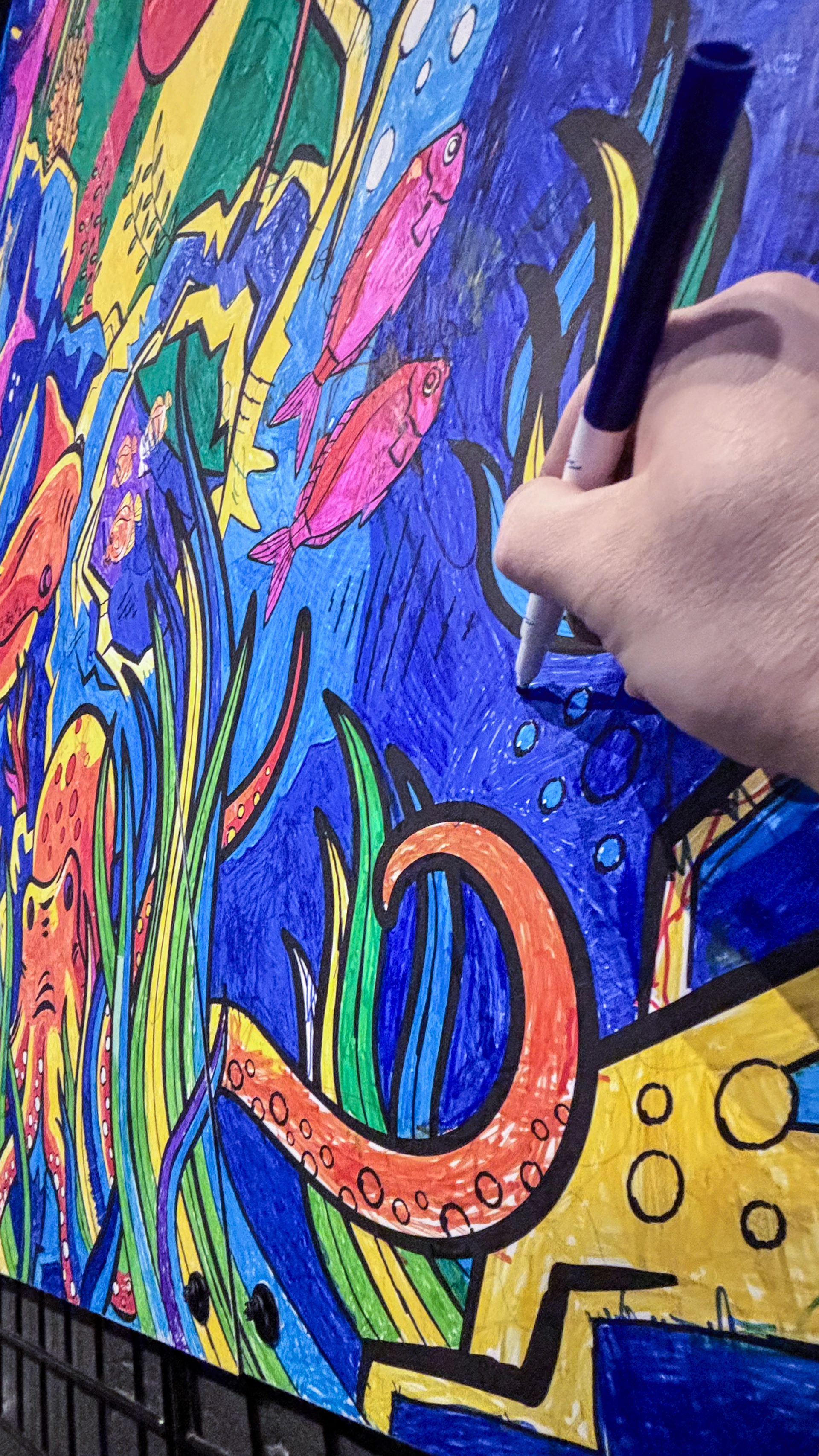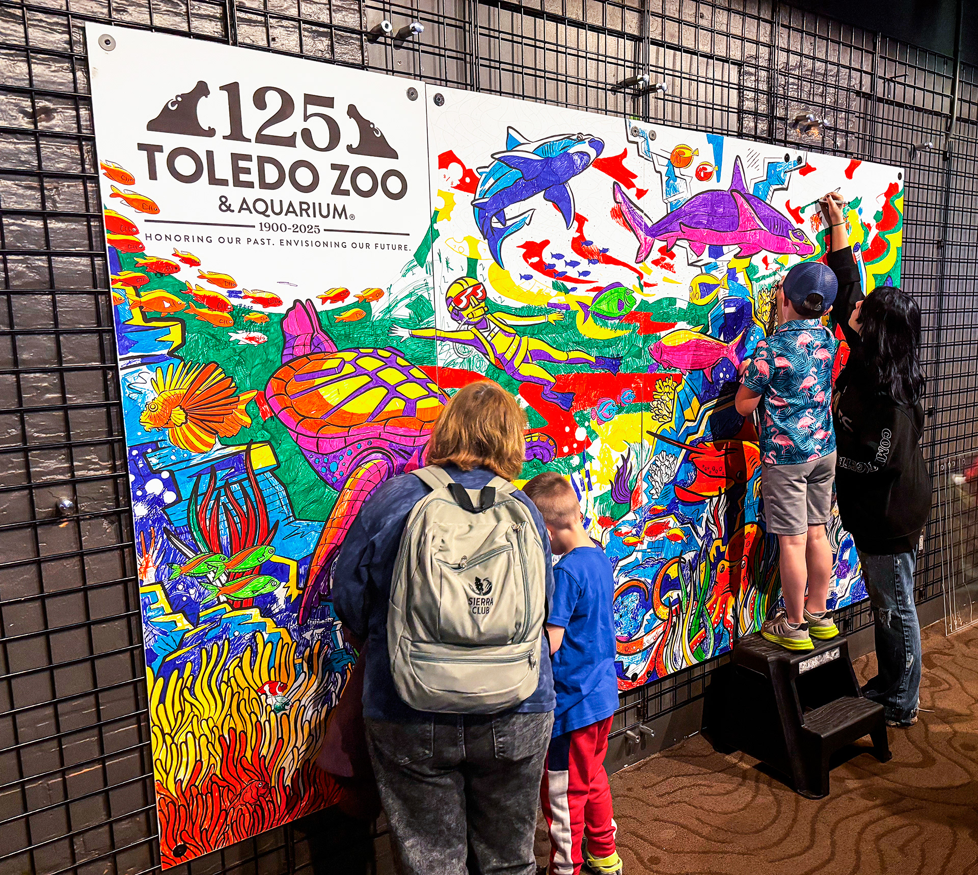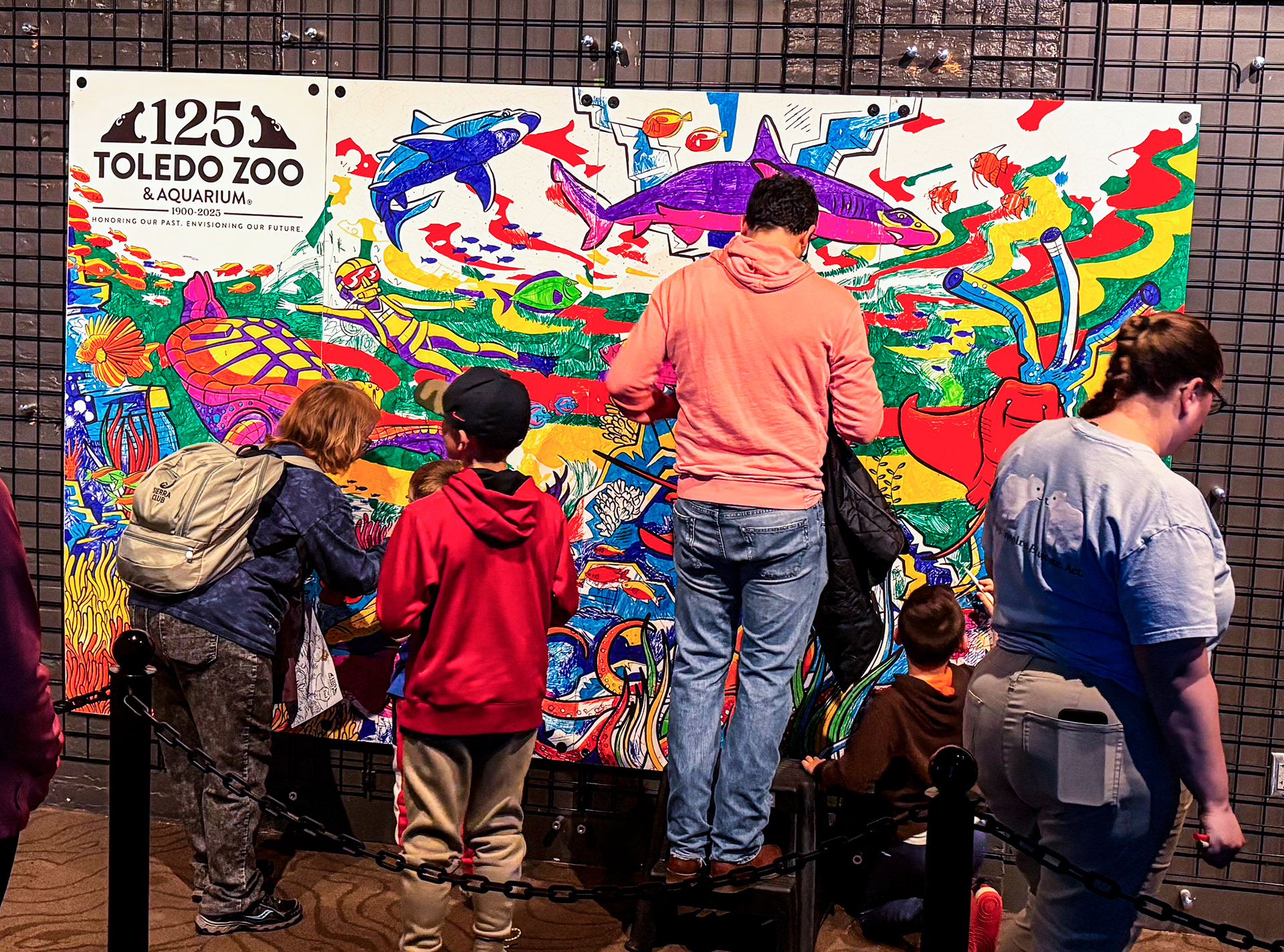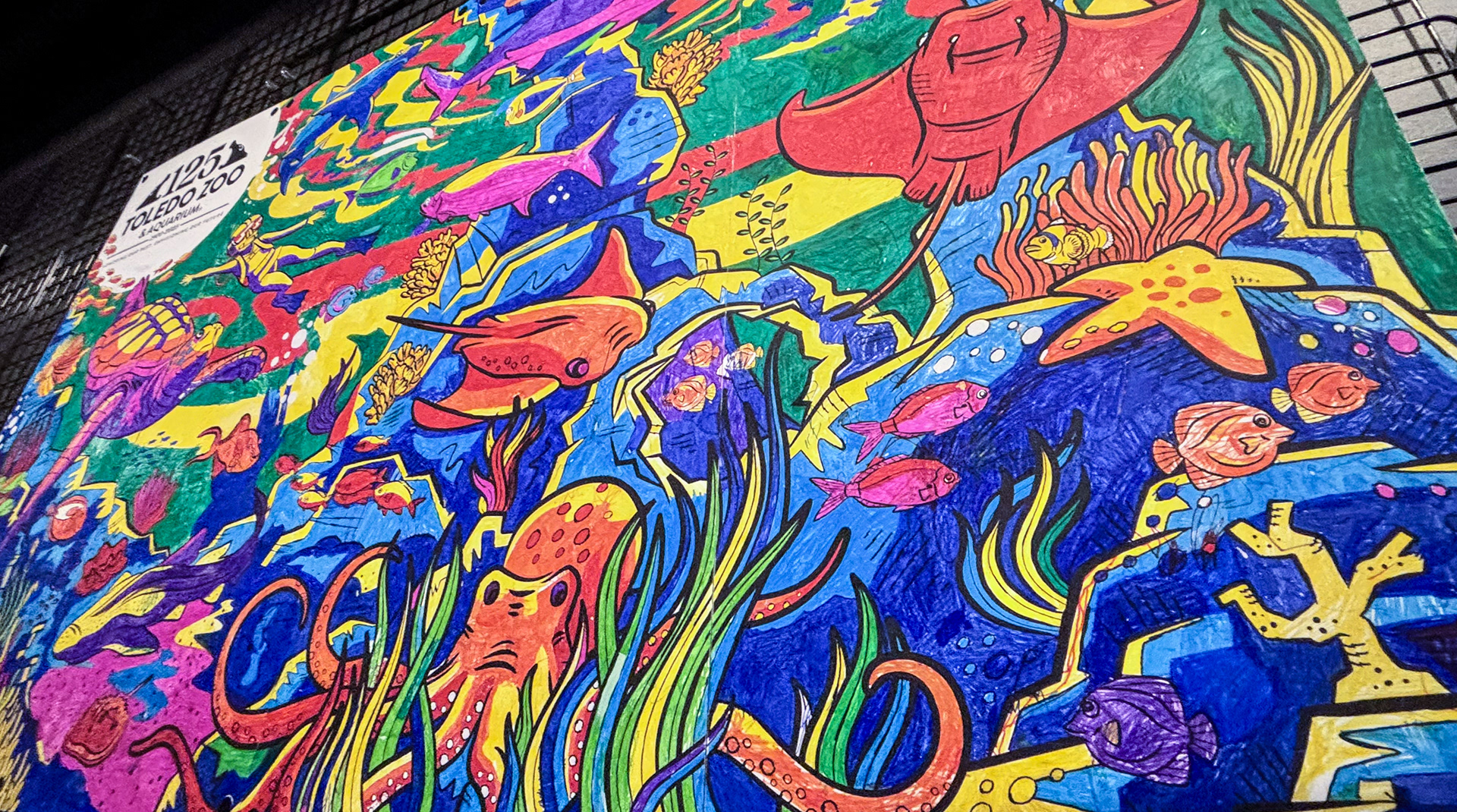 The Toledo Zoo & Aquarium commissioned me to create a 10' x 7' color by number wall that would be colored in by visitors to the zoo as part of their 125th anniversary event in March of 2025. The wall art includes some of the Toledo Zoo’s fan favorite sea life found at the aquarium, sectioned off into hundreds of areas to be colored in by the general public.