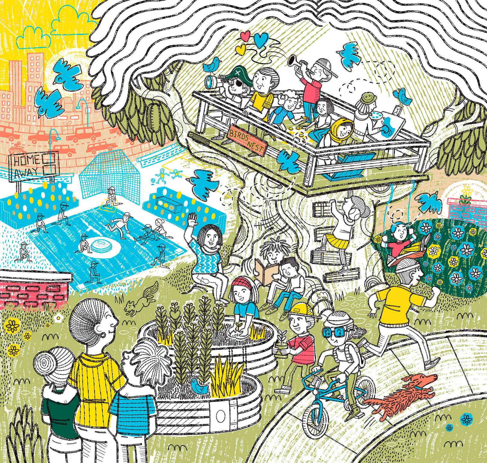 Bluebird Kids commissioned me to create and design a hidden picture art piece that would hang on the waiting room walls at all of their Florida office locations. The intent of the wall art was to entertain children as they waited to be seen by a doctor. As the creator, I was challenged to design not just another hidden picture art piece, but to design a work of art that would tell the story of the mission behind Bluebird Kids Health while upholding their brand look and feel.